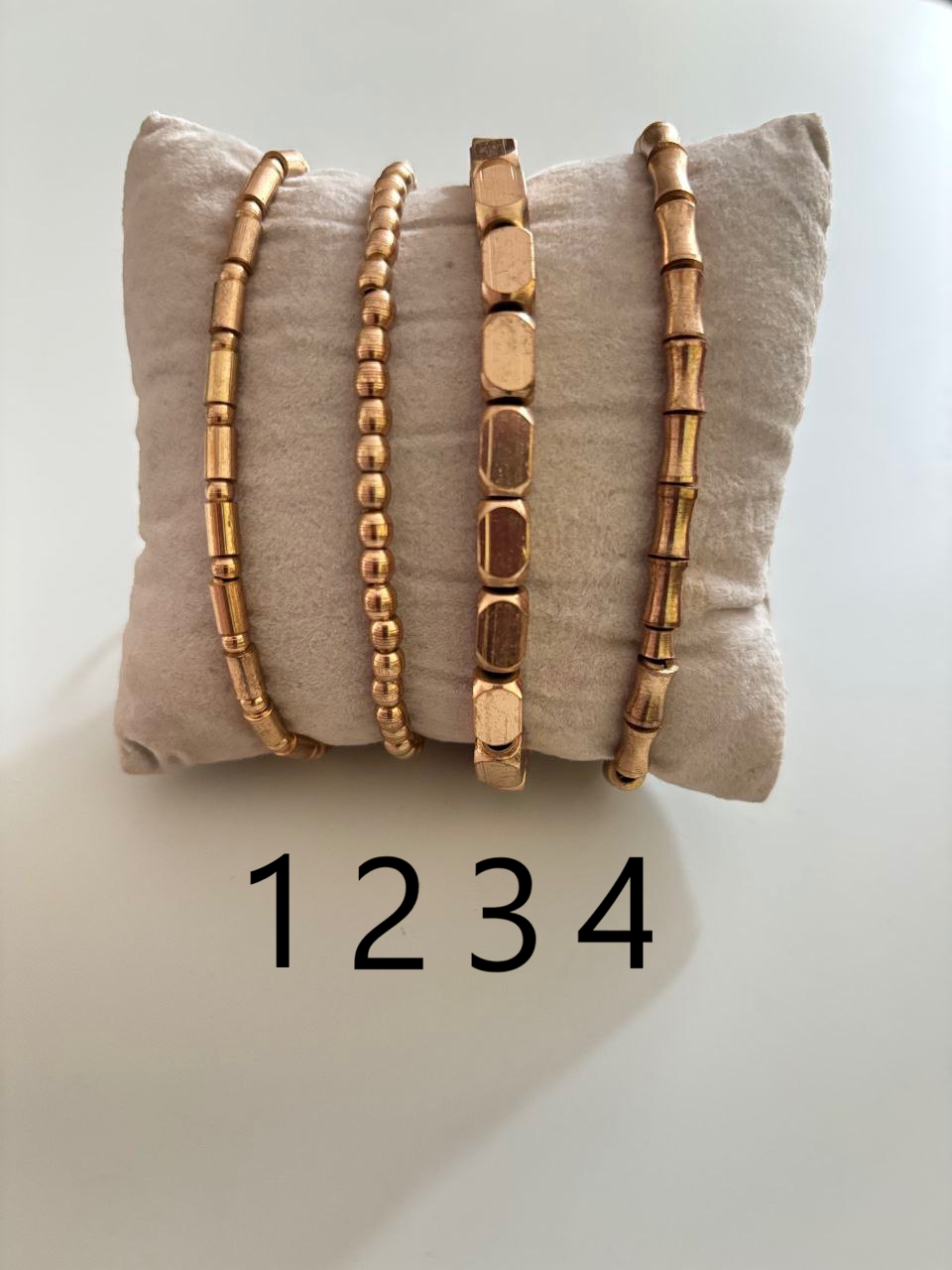دستبندهای مهرهای با مهرههای برنجی در اشکال مکعب، استوانه یا توپ